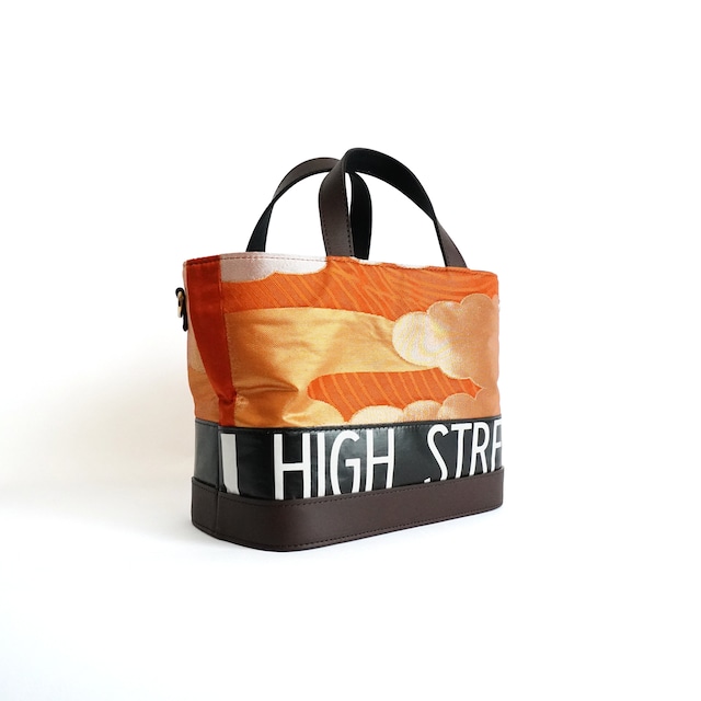 OBI precious 2wayショルダーバッグ / 極彩 SANS-SERIF OBI preciousの特徴は「和を活かしながら、 和に拘らないデザイン」をテーマにしたバッグです。 主に80年〜90年代に役目を終えた英国ロンドンバスの車体に実際に搭載されたロールサイン(バスの前面で回転して変わる行き先案内表示)と、呉服会社のコレクションとして大切に保管されていた約50年前の正絹袋帯 有職文様、その中でも金銀糸が施された文様部分を再利用して昇華させたショルダーバッグです。 グラフィカルな図案や色彩で表現されたキモノ帯を厳選し、鞄職人の技術によって1つずつ手作業で丁寧に縫い上げる限定生産プロダクトです。一本の帯から取れる枚数が限られているため、こちらは3本のみの限定生産になります。 仕様はミニサイズの2wayショルダーバッグ。可愛いい外観だけではなく堅牢性を考えて作った本体、和装・洋装それぞれのシチュエーションで自由に合わせて幅広いシーンでご使用いただけるアイテムです。ショルダーストラップは本体で使用している牛革と同じ材質で仕上げました。 ロールサイン詳細 Routes: Holloway Garage Camden Town Company: London Transport ・立体感を保つための型崩れを防止する上げ底加工 ・強度を高めるために綿オックス生地を重ねて加工した帆布を使用 ・タイベック製バスサイン内側に耐久性を高めるために不織布を手貼りで補強 ・持ち手/底面/内側上に姫路のタンナーが鞣す厳選した牛革を使用 ・底には鋭利な物などのダメージを防ぐ厚手の底板を内蔵 ・オープンポケット/ファスナーポケット サイズ:H18 × W21 × D11cm 持手 H10cm ストラップ 100cm 材質:正絹、タイベック、牛革、裏地レーヨン 100% 生産国:日本 《ご購入に関しての注意》 当時の産業資材をリユースしていますので、表面クリーニングはしておりますが、シミ、汚れ等が残っている場合があります。これらも敢えてデザイン上の風合いの一部としてそのまま残しております。繊細なプロダクトですので、洗濯は型くずれの原因にもなることから、原則お勧めいたしておりませんが、帆布生地が汚れた場合は、薄めた中性洗剤をつけたやわらかい布で叩いて落としてください。雨・水・汗・摩擦等により色落ち・色移りする事があります。?特に白系等の淡い色の衣服を着用の際にはご注意ください。タイベックは軟化・変形する恐れがありますので、ストーブ等の火のそばや高温になる所に置かないで下さい。?アイロン・ドライヤーは使用しないで下さい。?光(紫外線)の影響で変色する事があるため日光が当たらない所に保管して下さい。除菌シートやアルコール消毒薬、ウェットティッシュ、制汗シート等に含まれる アルコール分によって、 染料が剥げたり色落ち、変色のおそれがありますのでご注意ください。タイベックの白素地の部分は摩擦によって繊維が起毛します。 OBI precious 2way Shoulder / Gokusai 'Not too much London or Kyoto, but "Just". ' the factor that makes 'SANS-SERIF Obi precious bag' outstanding is used historical rare materials from London and Kyoto, the cities with a rich history. The material from London is the roll sign, which was mounted on a red double- decker London buses in the 80s-90s and it is combined with the vintage Kimono Obi from Kyoto,Japan,which is also produced in the same period. From one Obi, bags can be produced only 3-4 pieces,so they all are limited. We carefully selected them that have beautiful graphical patterns and colours. All the bag is hand-stitched one by one by skilled bag craftsmen. We hope you enjoy our bags' beauty and utility in a wide range of situations freely both with Kimonos and with your own fusion style. Roll Sign Details: Routes: Holloway Garage Camden Town Company: London Transport ・Raised bottom processing to prevent the shape from collapsing to maintain a three dimensional feel ・In order to increase the strength, cotton oxford cloth is sewn on the canvas lining. ・The inside of the Tyvek is reinforced by hand with non-woven fabric to enhance durability. ・Uses carefully selected cowhide tanned by Himeji tanner on the handle / bottom / inside. ・The bottom is equipped with a thick bottom plate Bellpollen to prevent it from being torn by pointed objects. ・Open pocket / zipper pocket Size : Width 21 x Depth 11 x Height 18 cm Carrying Height 10 cm Shoulder Strapt 100 cm Material : Pure silk, Tyvek, Cowhide, Lining Rayon 100% Country of Origin : Japan 《Notes on Purchasing》 Since industrial materials from those days are reused, the surface has been cleaned, but some stains and dirt may remain on the surface. We dare to leave them as they are as part of the design texture. However, if the canvas fabric gets dirty, please pat it down with a soft cloth soaked in diluted neutral detergent. The color may fade or migrate due to rain, water, perspiration, friction, etc. Be especially careful when wearing light-colored clothing such as white. Tyvek may soften or deform, so do not place near a fire such as a stove or in a high-temperature area. Do not use an iron or hair dryer. Do not store in a place exposed to sunlight, as light (ultraviolet rays) may cause discoloration. Please note that the alcohol content in disinfectant sheets, alcohol sanitizers, wet wipes, antiperspirant sheets, etc. may cause the dye to peel, fade, or discolor the fabric. Fibers on the white Tyvek fabric will become bristled due to friction.