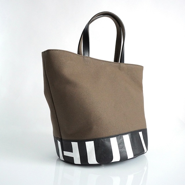 バケットトート cl / スモーク Bucket Tote clは、主に80〜90年代、ロンドンバスで実際に使用されたタイベック製のデスティネーションサイン(方向幕)と高品質な国産帆布を素材にしています。それぞれのバッグは、経験豊富な鞄職人の手によって、丁寧に縫製された一点物です。使い込むほどに愛着が湧く、こだわりのあるトートです。2024年秋、マイナーチェンジし外観は従来とほぼ同じスタイルですが、底・内側上部には牛本革を使用し堅牢性を高め、スタンダードタイプからさらに高品質な姿へ新しく生まれ変わりました。 バケツ型のデザインは、シンプルながらも存在感があり、様々なシーンで活躍します。日常の買い物から、ちょっとしたお出かけまで幅広くご利用いただけます。内側にはオープンポケットがあり、小物の整理にも便利です。軽快な持ち運びができるので、サブバッグとしてもお使いいただけます。男性にもお使いいただけるユニセックスな個性派トートです。 [ 改良点 ] ・熟練のハンドバッグ職人が仕上げる洗練された製造技術 ・底・内側上部には牛本革を使用 ・革のコバ処理は高級感のあるマットな仕上げ ・オープンポケットはスマートフォン用にリサイズ、・オープンポケット片側2×片側1 装備 ・両面生地の接合部は帆布の一部を漉いて面が合うようにスッキリした印象に仕立てています。 [ 継承点 ] ・強度を高めるために帆布の裏地に綿オックス生地を加工 ・タイベック内側に耐久性を高めるために芯を手貼りで補強 ・持ち手/底面/内側上に姫路のタンナーが鞣す厳選した牛革を使用 ・底には尖った物などによる破けを防ぐ厚手の底板を内蔵 サイズ:直径22 × H24.5 持手 H11cm 重さ:約350g 材質:綿 100%、タイベック、牛革、裏地レーヨン 100% 生産国:日本 ロールサイン詳細 : BIRMINGHAM Routes: West Midlands Company: Acocks Green Minibus Period: 1994 《ご購入に関しての注意》 当時の産業資材をリユースしていますので、表面クリーニングはしておりますが、シミ、汚れ等が残っている場合があります。これらも敢えてデザイン上の風合いの一部としてそのまま残しております。繊細なプロダクトですので、洗濯は型くずれの原因にもなることから、原則お勧めいたしておりませんが、帆布生地が汚れた場合は、薄めた中性洗剤をつけたやわらかい布で叩いて落としてください。摩擦及び雨天のご使用や白系等の衣服を着用の際に、色が付着する可能性がありますのでご注意ください。帆布(ブラック)は、多少色落ちする事がありますのでご注意ください。タイベックの白い素地の部分は、摩擦によって繊維が起毛します。 *** Bucket Tote cl / Smoke Bucket Tote cl is mainly made from Tyvek destination signs (directional signs) actually used on London buses in the 80s and 90s and high-quality Japanese canvas. Each bag is one-of-a-kind, carefully sewn by experienced bag craftsmen. In autumn 2024, the exterior of the tote underwent a minor change and is almost the same style as before, but the bottom and inside are made of genuine cowhide leather, making it more robust and giving it a new, higher-quality appearance than the standard type. The bucket-shaped design is simple but has a strong presence and can be used in a variety of situations. It can be used for a wide range of purposes, from everyday shopping to short trips. An open pocket on the inside is convenient for organising small items. It can also be used as a sub-bag as it can be carried lightly. This unisex, unique tote is popular with men. [Improvements.] Sophisticated manufacturing techniques finished by skilled handbag craftsmen. The bottom and upper inside are made of genuine cowhide leather. The leather is treated with a luxurious matt finish. Open pocket resizes for smartphones. 2 open pockets on one side and 1 on the other. The joints between the two sides of the fabric are made by straining a part of the canvas so that the surfaces meet to create a clean impression. [Inheritance points.] Cotton ox fabric is processed into the lining of the canvas to increase strength. The inside of the Tyvek is reinforced with a hand-applied core to increase durability. The handles, bottom and top inside are made from carefully selected tanned cowhide leather from a tannery in Himeji. Thick sole plate built into the bottom to prevent tearing by sharp objects. Size : Diameter 22 x Height 24.5 cm Carrying Height 11 cm Weight : Approx.350g Material : Cotton 100%, Tyvek, Cowhide, Lining Rayon 100% Country of Origin : Japan Roll Sign Details: 《Notes on Purchasing》 Since the industrial materials of that time are reused, the surface is cleaned, but stains and dirt may remain. These are left as they are as part of the design texture. As it is a delicate product, I do not recommend washing as it may cause the shape to be lost. However, if the canvas fabric becomes dirty, please pat it off with a soft cloth with diluted mild detergent. Please note that color may stick when using the product in friction or rain, or when wearing white clothing. Please note that the color of the canvas (black) may fade slightly. The white base of Tyvek has fibers raised by friction."