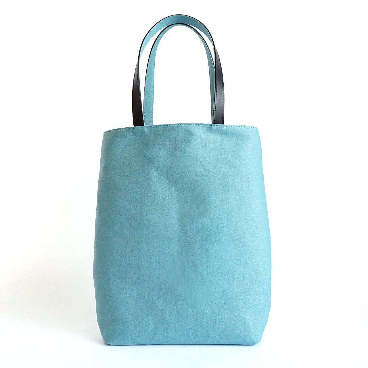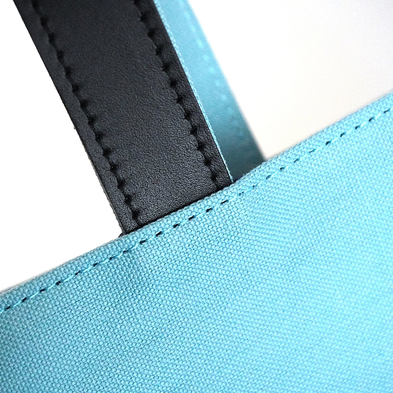 素材には国産11号キャンバス・綿オックス・レーヨン裏地による三層構造を採用し、軽さと堅牢さを兼ね備えています。持ち手は姫路のスムースレザーを使用し、共生地のキャンバスを重ねて縫い合わせています。