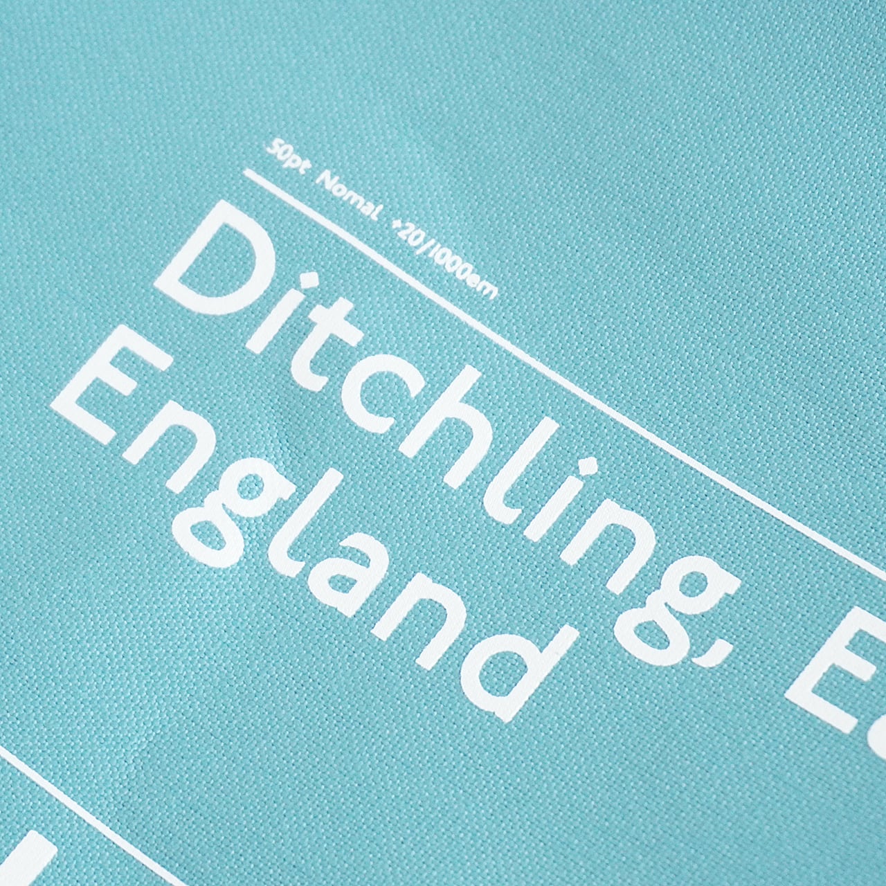 ロンドン地下鉄の書体を手がけた エドワード・ジョンストンの〈Johnston Sans〉、そして後を継いだ エリック・ギルの〈Gill Sans〉。20世紀の英国を代表する2つの書体を用い、デザインはカーニング(文字間の調整)をモチーフにしたタイポグラフィであしらっています。それぞれの書体制作者が活躍した地名や製作年を組み合わせた、普段使いの軽やかなトートバッグです。