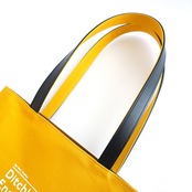 素材には国産11号キャンバス・綿オックス・レーヨン裏地による三層構造を採用し、軽さと堅牢さを兼ね備えています。持ち手は姫路のスムースレザーを使用し、共生地のキャンバスを重ねて縫い合わせています。