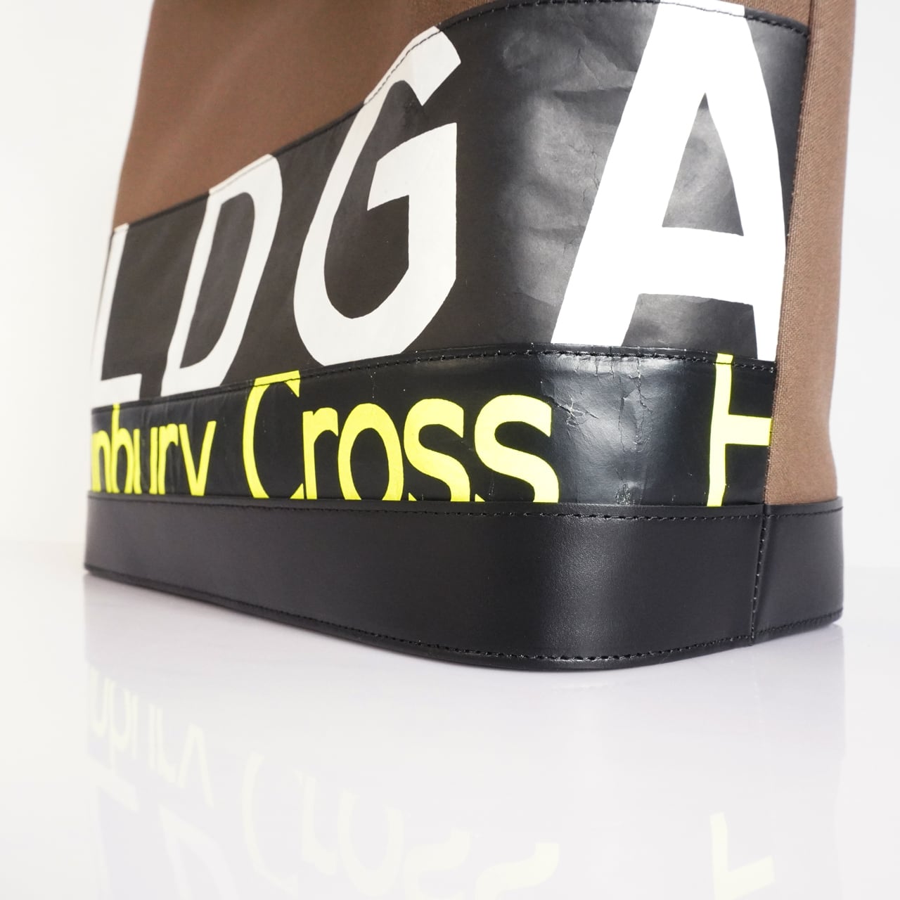 80年〜90年代に役目を終えた英国ロンドンバスの車体に実際に搭載されたタイベック製のロールサイン(バスの前面で回転して変わる行き先案内表示)と高品質な国産帆布を素材にし鞄職人よる縫製技術によって1つずつ手作業で丁寧に縫い上げる一点物のバッグです。