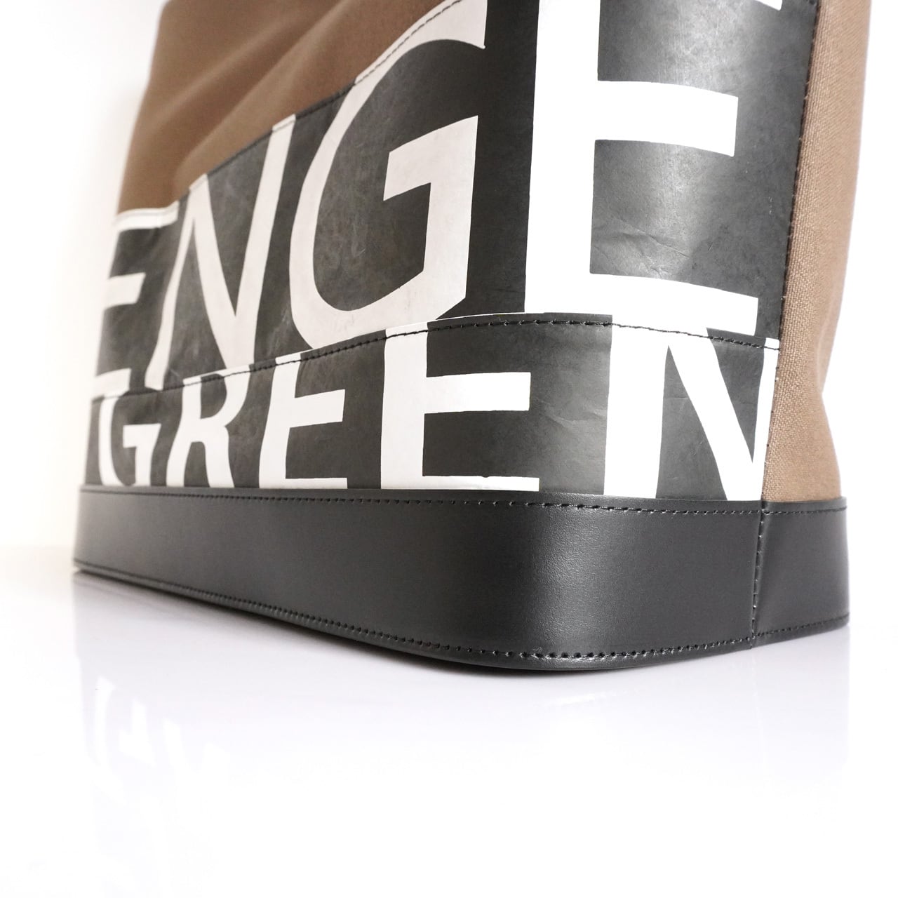 80年〜90年代に役目を終えた英国ロンドンバスの車体に実際に搭載されたタイベック製のロールサイン(バスの前面で回転して変わる行き先案内表示)と高品質な国産帆布を素材にし鞄職人よる縫製技術によって1つずつ手作業で丁寧に縫い上げる一点物のバッグです。