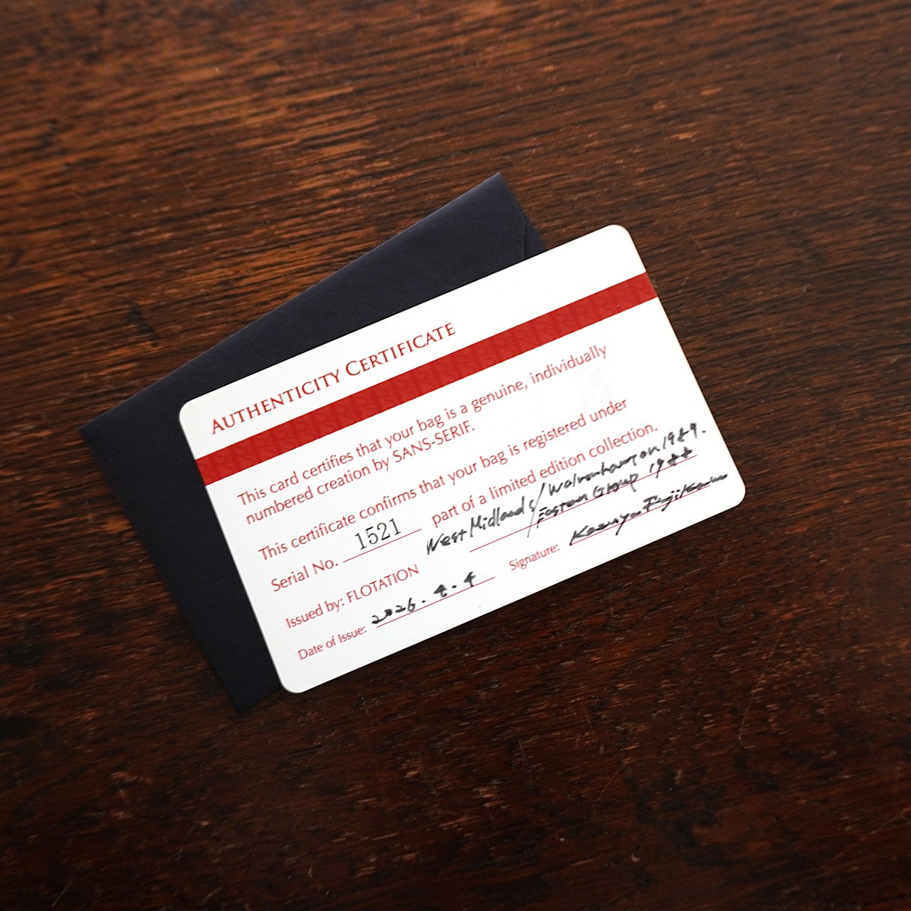As industrial materials from those days are reused, the surface has been cleaned, but stains, dirt, etc. may remain. We dare to leave these as they are as part of the design texture. However, if the canvas fabric becomes soiled, please pat it down with a soft cloth dampened with diluted neutral detergent. Colour fading and colour migration may occur due to rain, water, perspiration and friction. Be particularly careful when wearing light-coloured clothing such as white. Tyvek may soften or deform, so do not place near a fire such as a stove or in a high-temperature area. Do not use an iron or hairdryer. Store out of sunlight or fluorescent light as light (ultraviolet rays) may cause discolouration. Please note that the alcohol content in disinfectant sheets, alcohol disinfectants, wet wipes, antiperspirant sheets, etc. may cause the dye to peel, the colour to fade or discolour. The fibres of the white Tyvek fabric will become bristly due to friction.