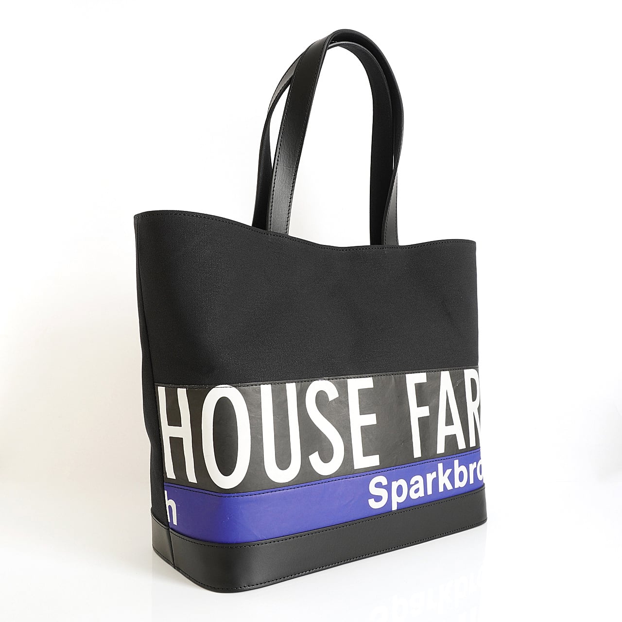 80年〜90年代に役目を終えた英国ロンドンバスの車体に実際に搭載されたタイベック製のロールサイン(バスの前面で回転して変わる行き先案内表示)と高品質な国産帆布を素材にし鞄職人よる縫製技術によって1つずつ手作業で丁寧に縫い上げる一点物のバッグです。