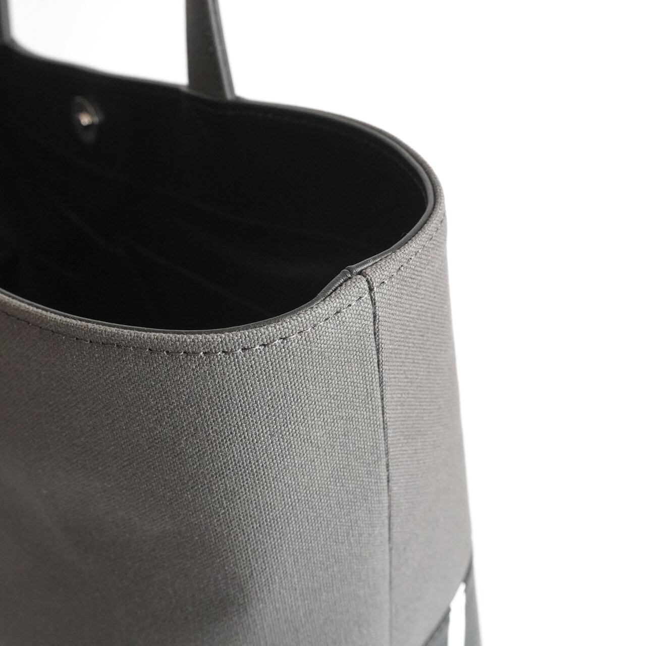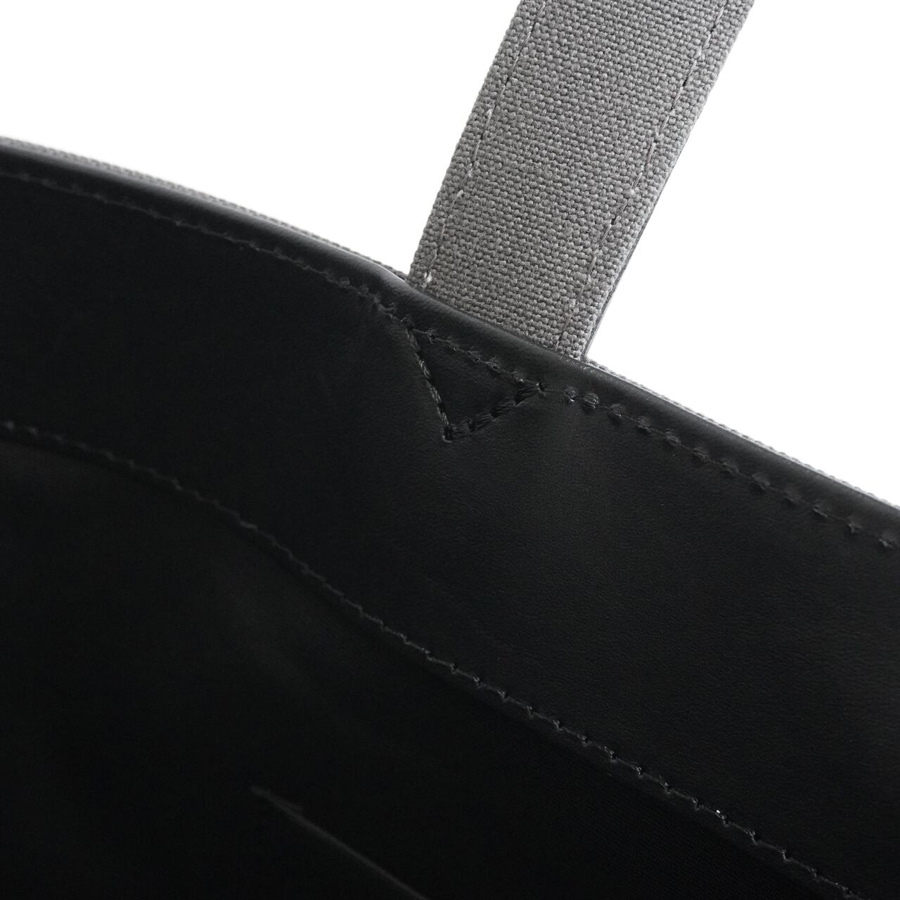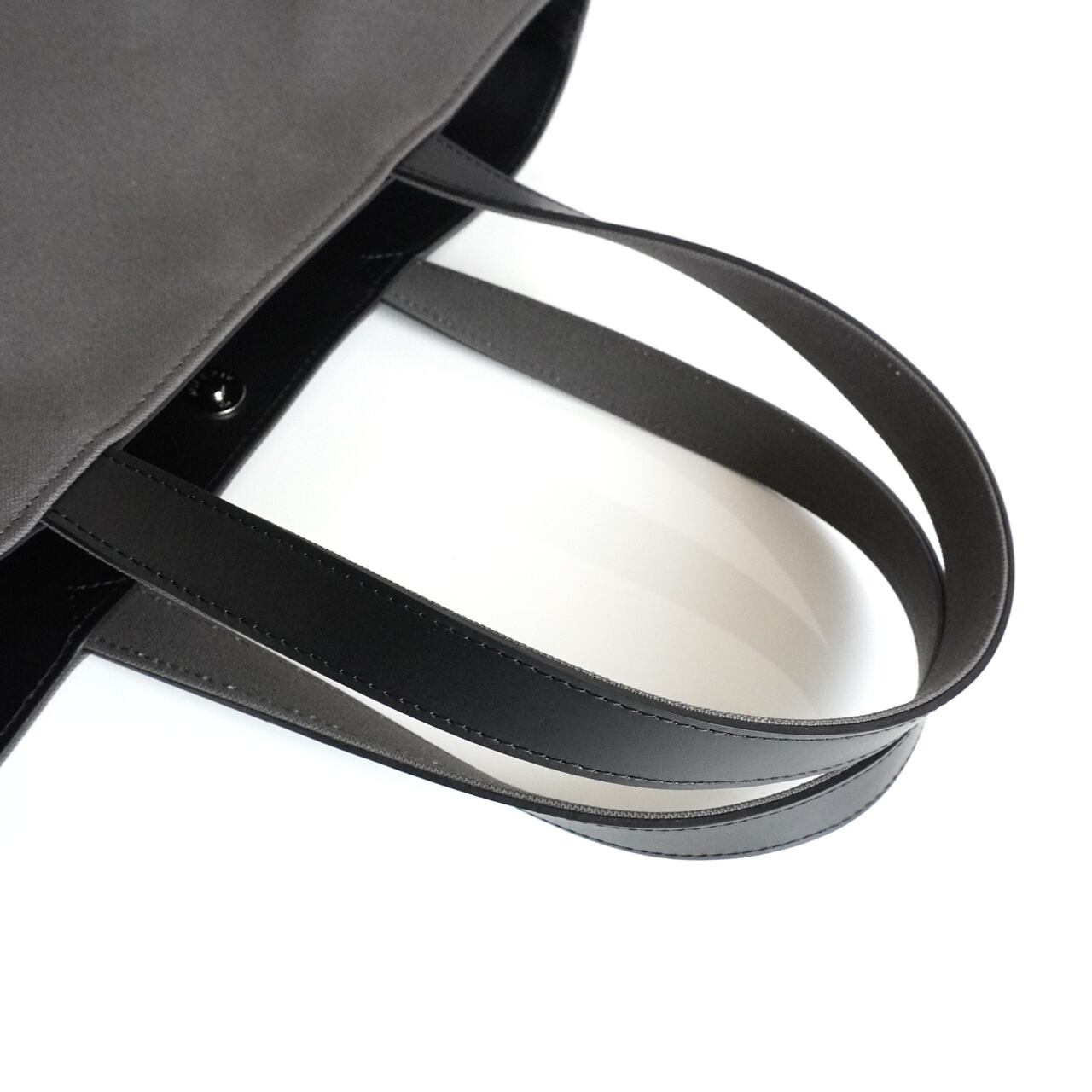 肩掛け・手持ちの両方で使い勝手の良いトートバッグ。普段使いに丁度良いサイズ感で、A4サイズの書類やノートパソコンもすっきり収納できます。しっかりとした国産帆布に加え、内側上部はレザー張り、底部も革の上げ底仕様となっており、床に置いてもストンと自立する美しいフォルムを保ちます。重厚感のある佇まいながら、見た目に反して軽量なつくりで、ビジネスからカジュアルまで幅広いシーンでご活用いただけます。