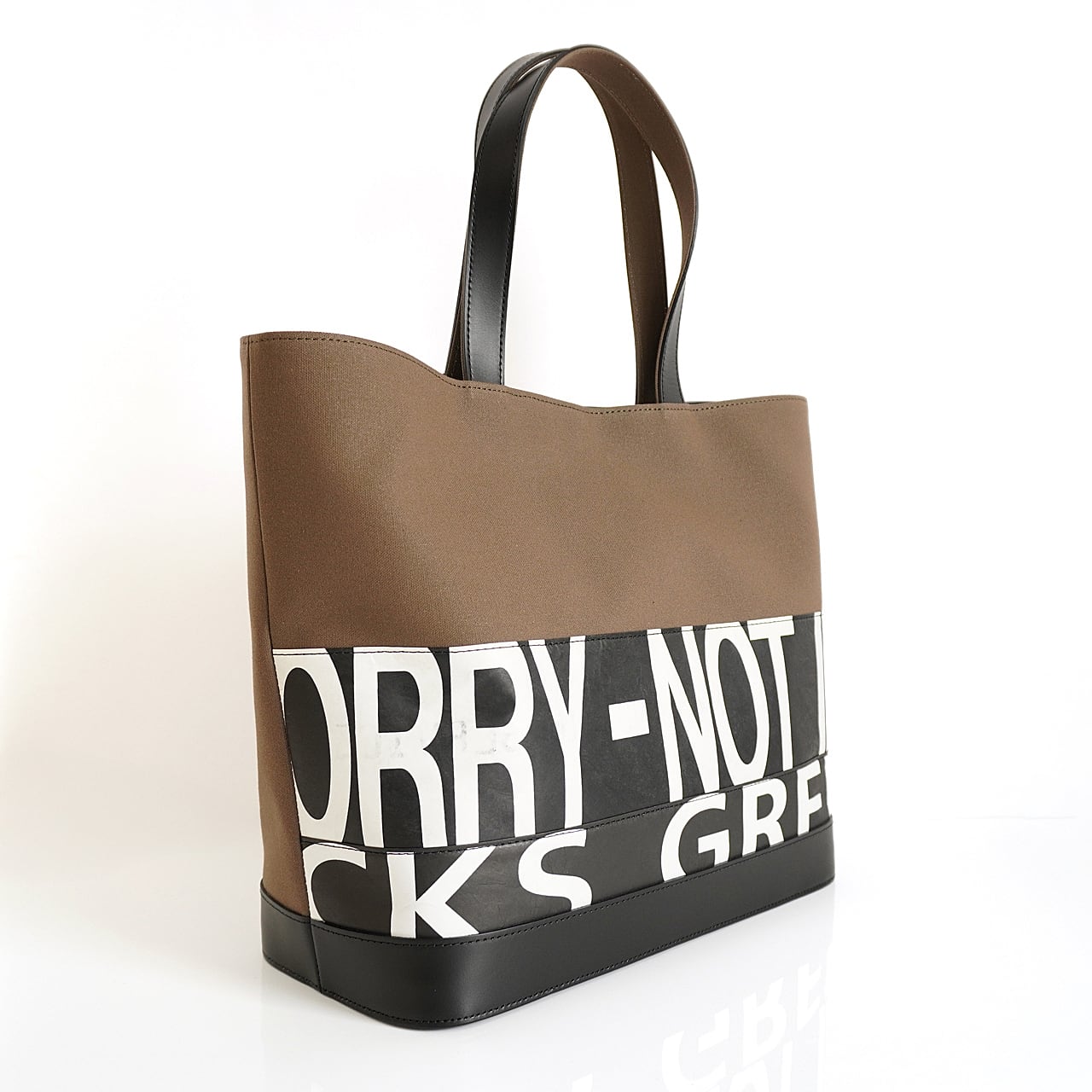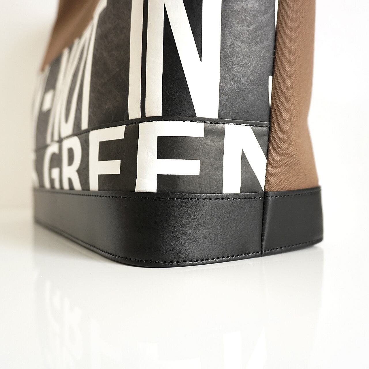 These one-of-a-kind bags are made from Tyvek roll signs (destination signs that rotate and change on the front of the bus) that were actually installed on the bodies of British London buses that had finished their duties in the 1980s and 1990s, and high-quality Japanese canvas, carefully sewn one by one by hand using the sewing techniques of Japanese bag craftspeople.