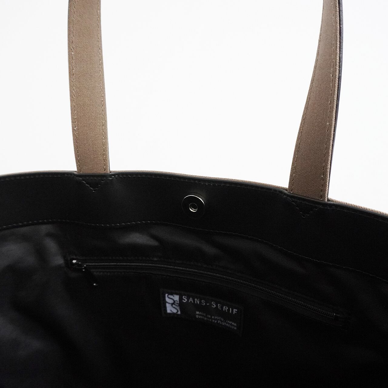 This is a bag of just the right size for everyday use with a versatile design that can be used either on the shoulder or hand-held, and since A4 size fits snugly, documents and notebook computers can be carried neatly. The solid canvas, leather interior, and raised leather bottom allow the bag to stand up on its own even when placed on the floor. It is surprisingly lightweight for its massive appearance, so it can be used in a wide range of situations.