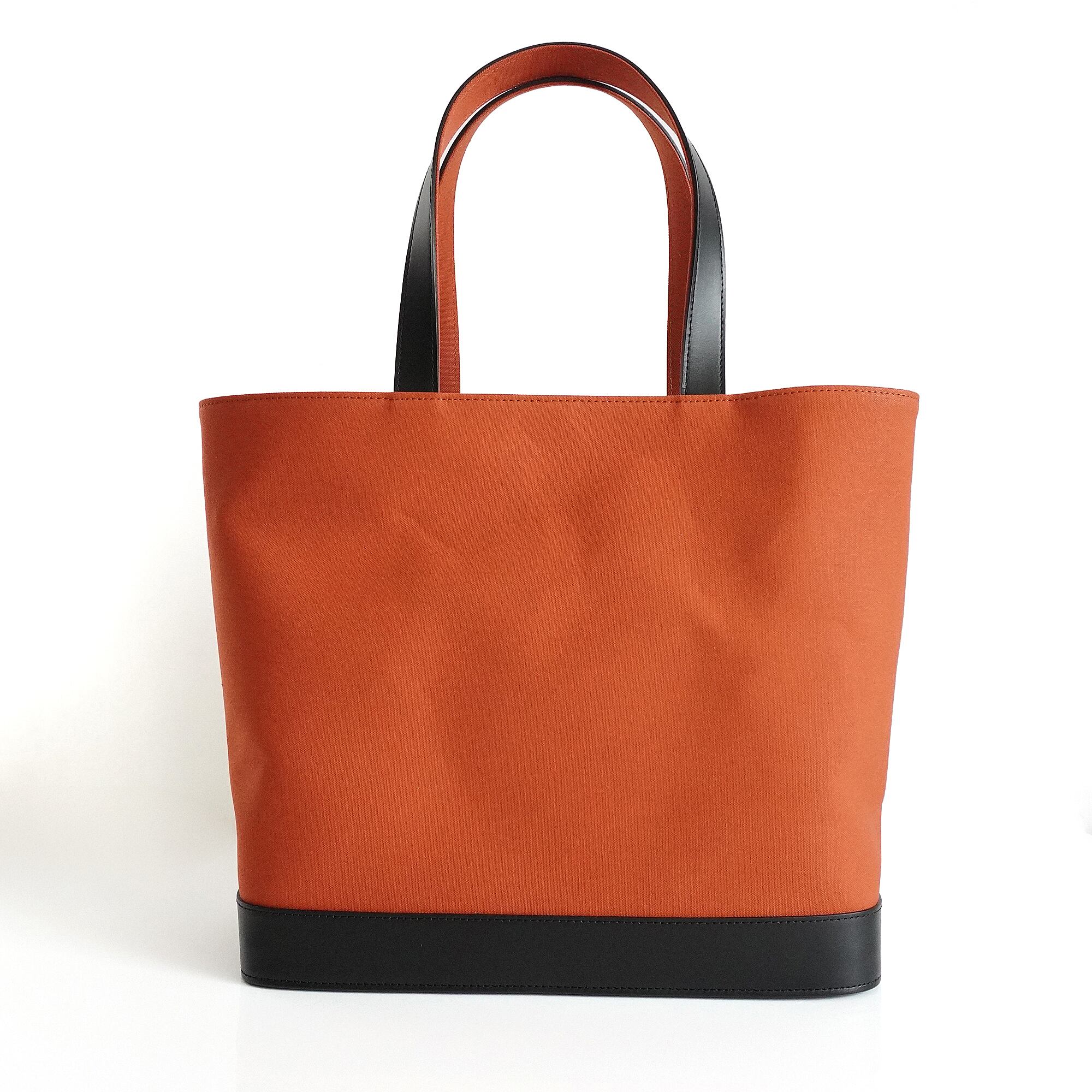 肩掛け・手持ちの両方で使い勝手の良いトートバッグ。普段使いに丁度良いサイズ感で、A4サイズの書類やノートパソコンもすっきり収納できます。しっかりとした国産帆布に加え、内側上部はレザー張り、底部も革の上げ底仕様となっており、床に置いてもストンと自立する美しいフォルムを保ちます。重厚感のある佇まいながら、見た目に反して軽量なつくりで、ビジネスからカジュアルまで幅広いシーンでご活用いただけます。