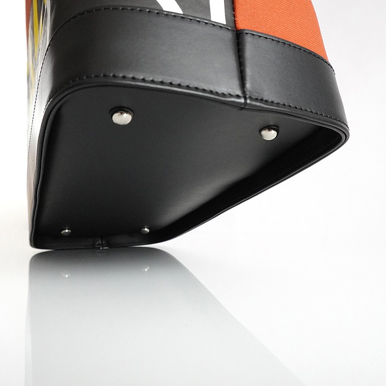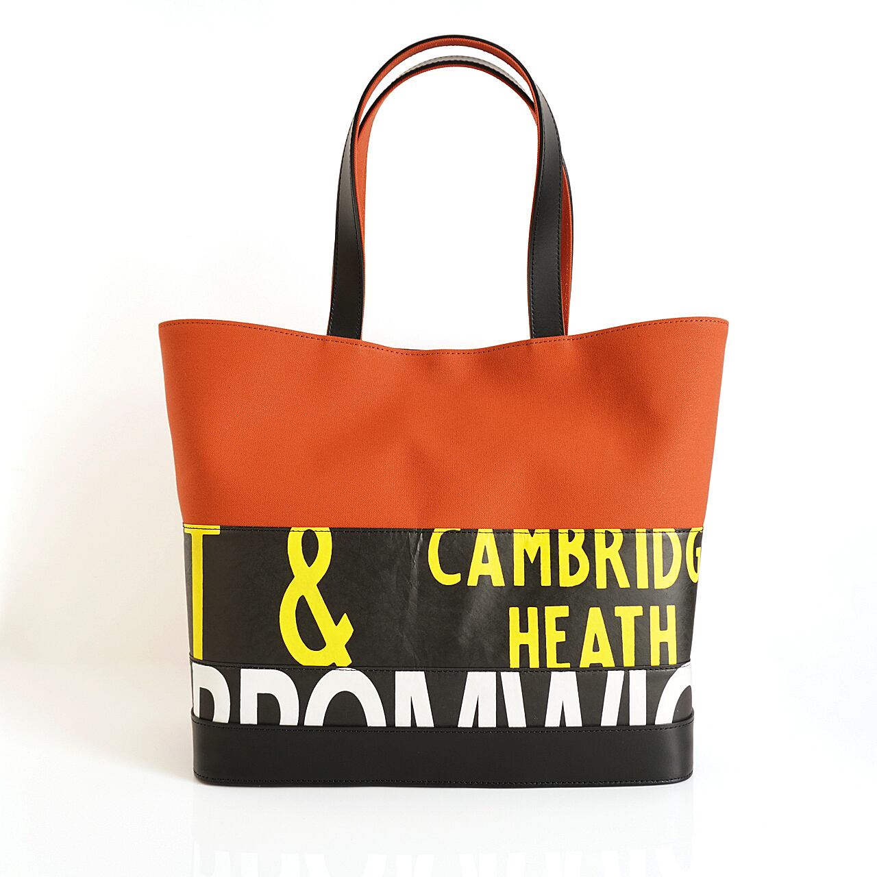 80年〜90年代に役目を終えた英国ロンドンバスの車体に実際に搭載されたタイベック製のロールサイン(バスの前面で回転して変わる行き先案内表示)と高品質な国産帆布を素材にし鞄職人よる縫製技術によって1つずつ手作業で丁寧に縫い上げる一点物のバッグです。