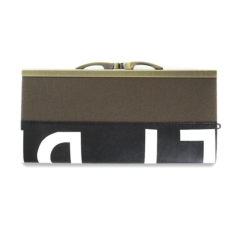 英国ロンドンバスで実際に車体に搭載されていたデスティネーションサイン(バスの前面で回転して変わる、行き先案内表示)をカットし、滋賀県産 高島帆布をベースにして京都のガマ口職人による手作業で丁寧に縫い上げる一点物のアイテムです。