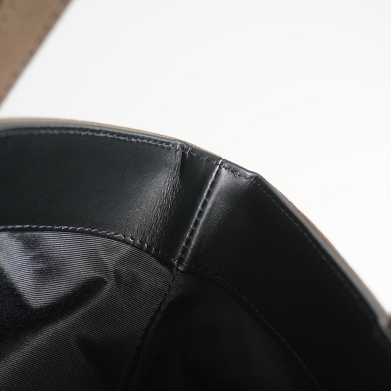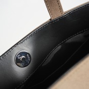 The bucket-shaped design is simple but has a strong presence and can be used in a variety of situations. It can be used for a wide range of purposes, from everyday shopping to short trips. An open pocket on the inside is convenient for organising small items. It can also be used as a sub-bag as it can be carried lightly.