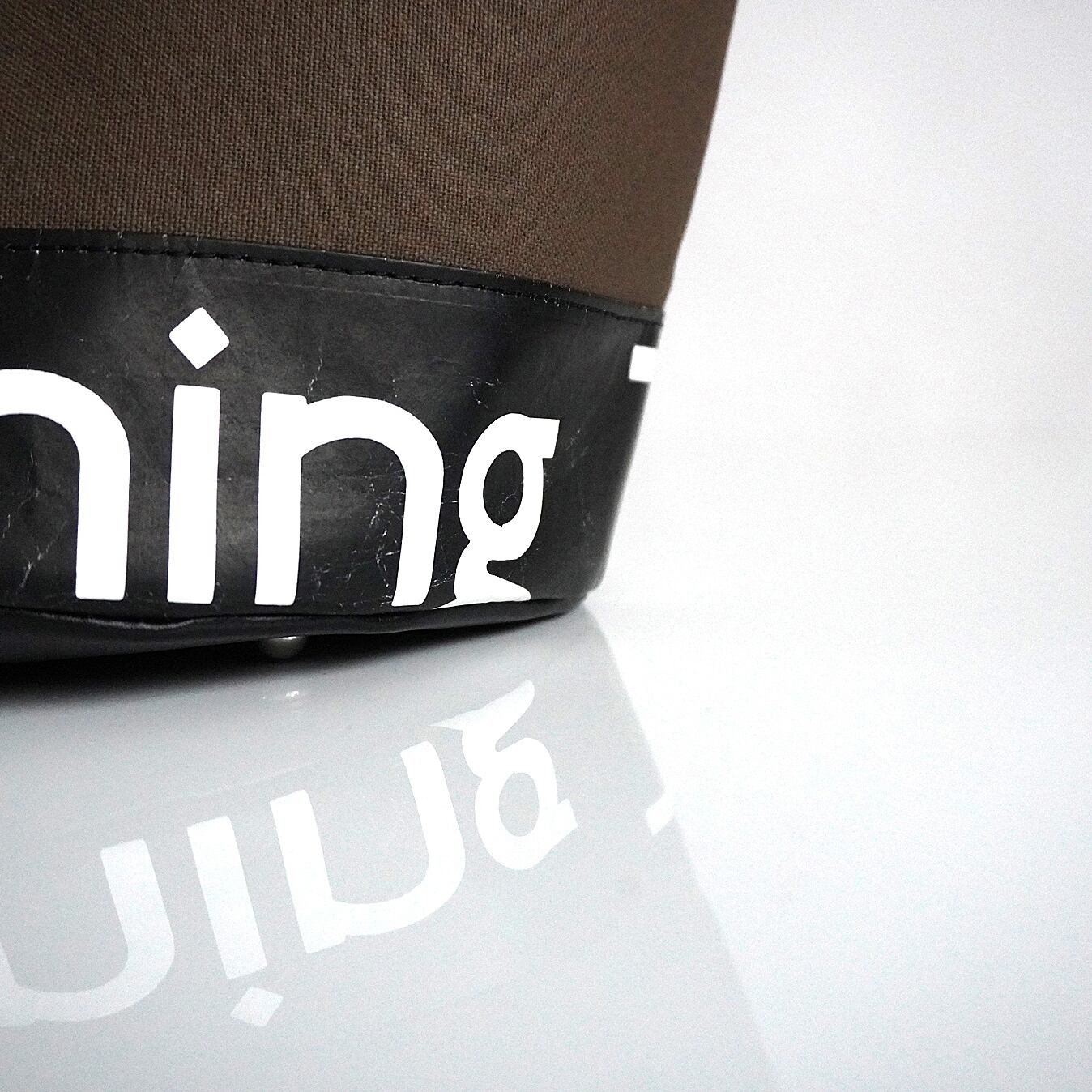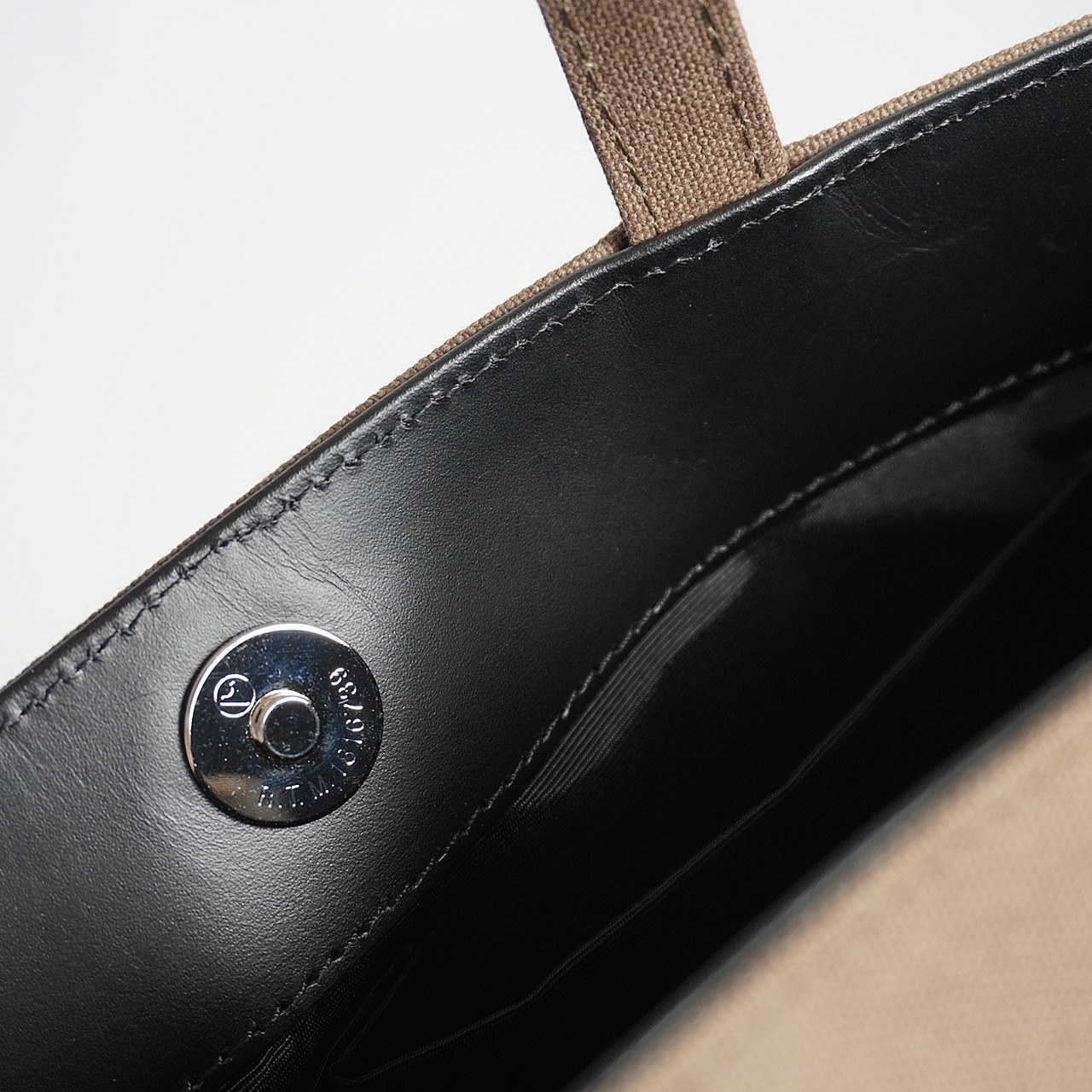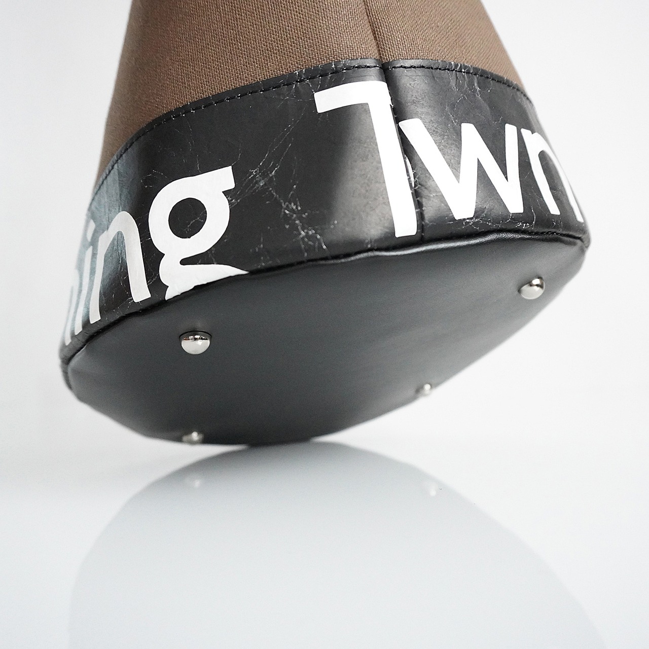Bucket Tote cl is mainly made from Tyvek destination signs (directional signs) actually used on London buses in the 80s and 90s and high-quality Japanese canvas. Each bag is one-of-a-kind, carefully sewn by experienced bag craftsmen. In autumn 2024, the exterior of the tote underwent a minor change and is almost the same style as before, but the bottom and inside are made of genuine cowhide leather, making it more robust and giving it a new, higher-quality appearance than the standard type.