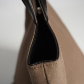 ・両面生地の接合部は帆布の一部を漉いて面が合うようにスッキリした印象に仕立てています。