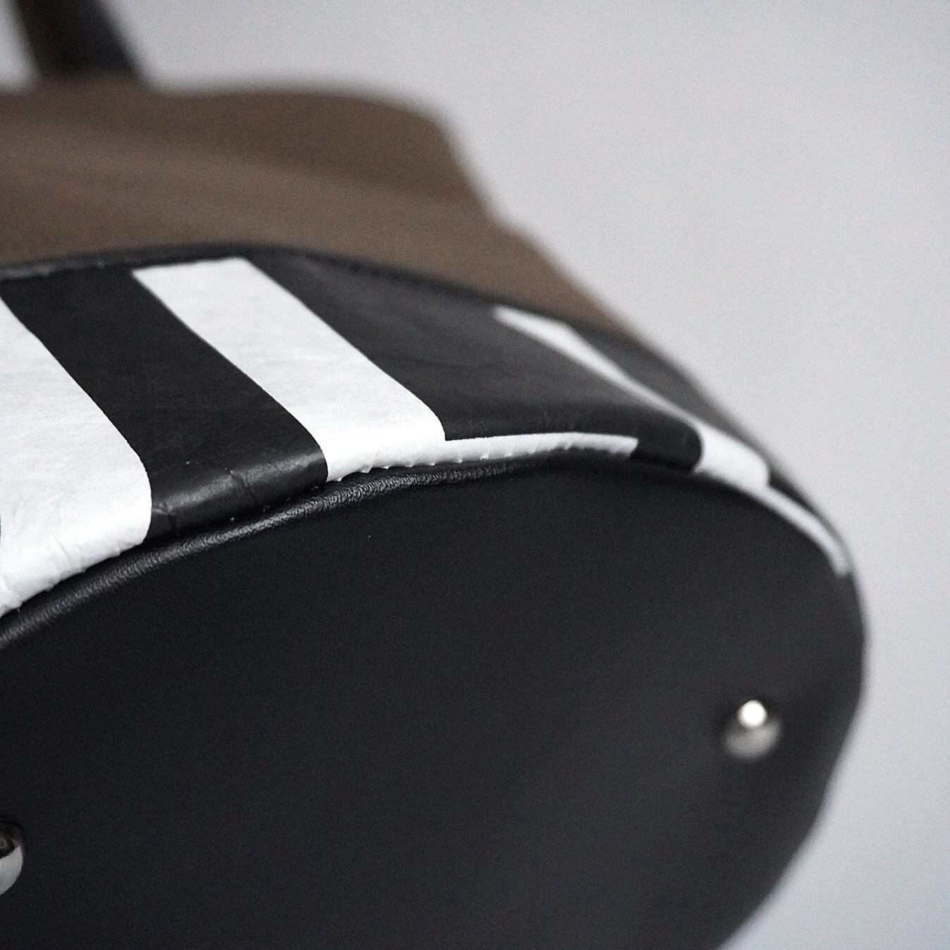 Since the industrial materials of that time are reused, the surface is cleaned, but stains and dirt may remain. These are left as they are as part of the design texture. As it is a delicate product, I do not recommend washing as it may cause the shape to be lost. However, if the canvas fabric becomes dirty, please pat it off with a soft cloth with diluted mild detergent. Please note that color may stick when using the product in friction or rain, or when wearing white clothing. Please note that the color of the canvas (black) may fade slightly. The white base of Tyvek has fibers raised by friction."