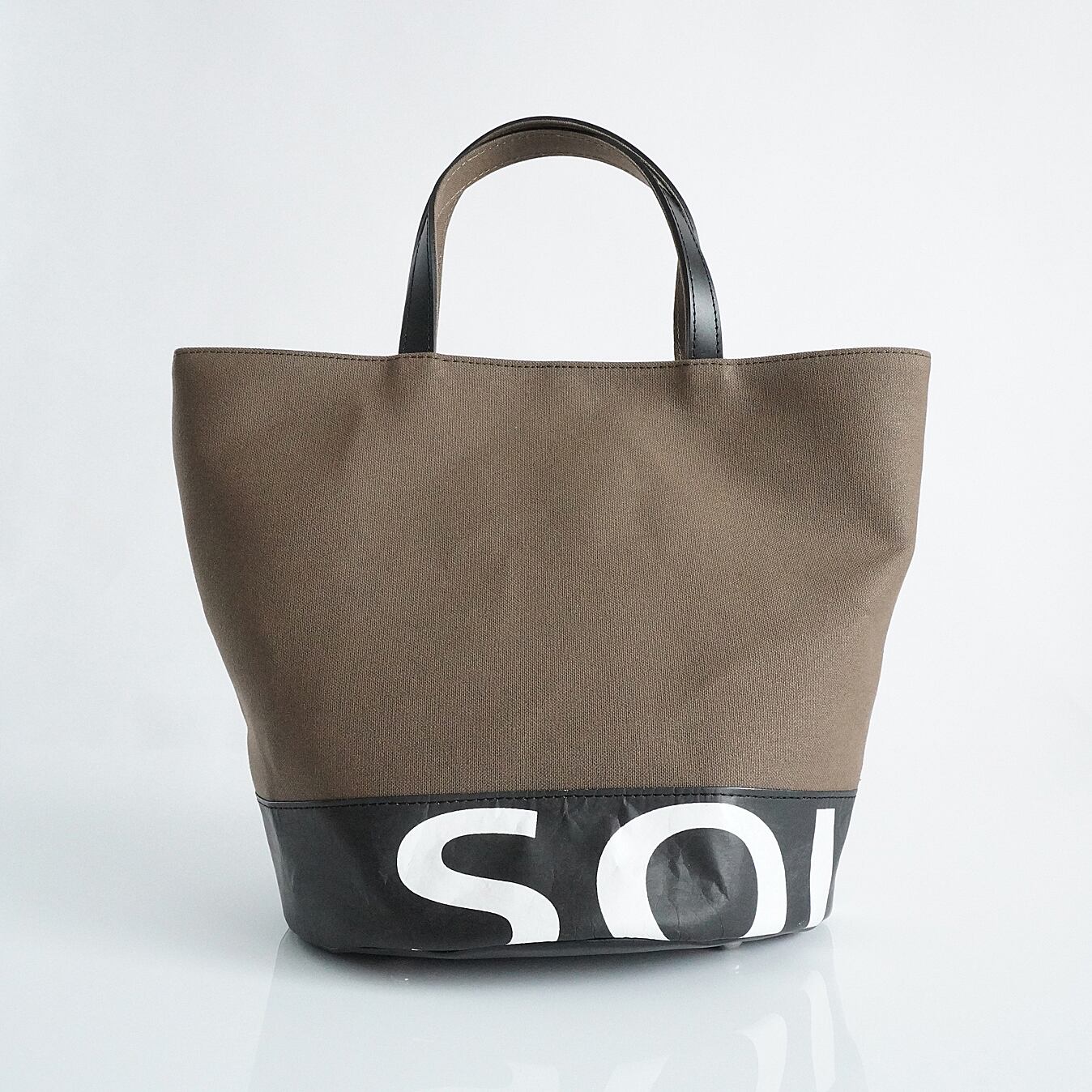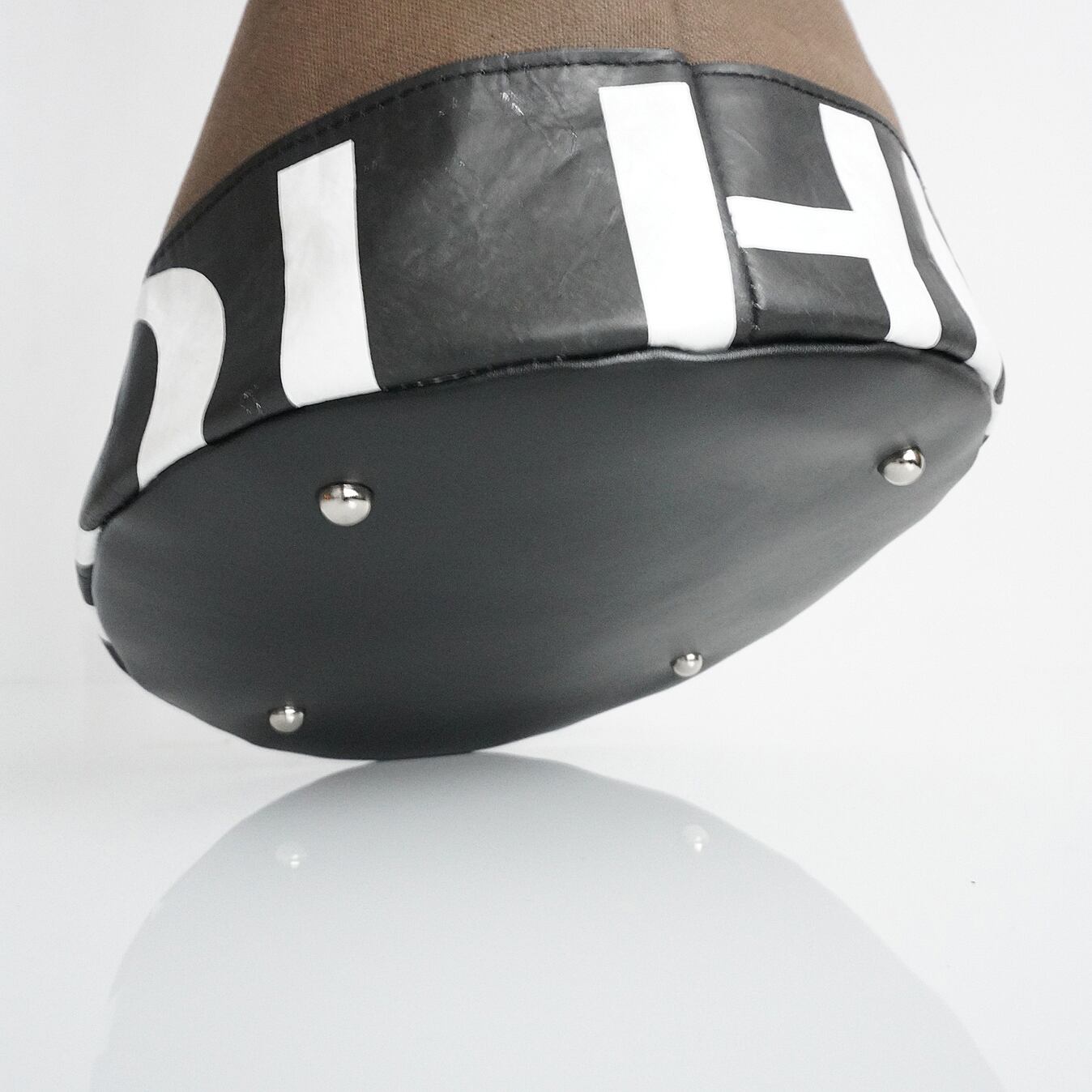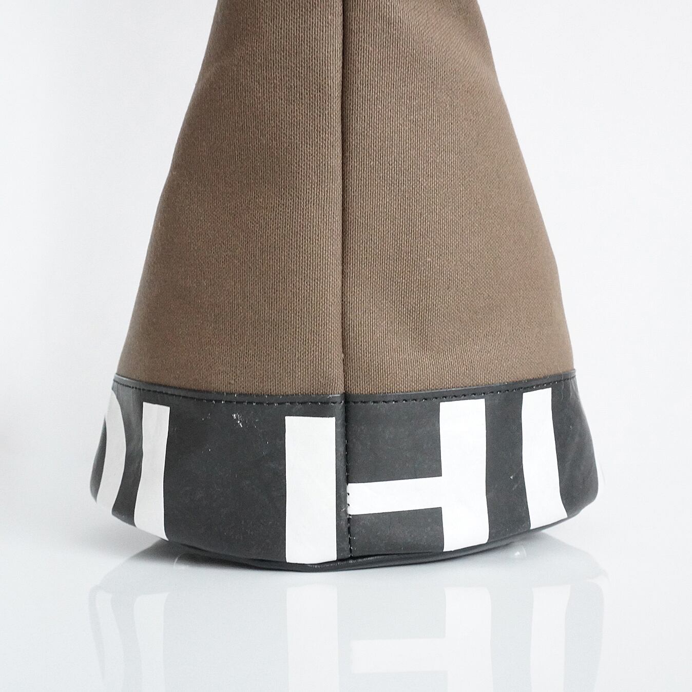 Bucket Tote cl is mainly made from Tyvek destination signs (directional signs) actually used on London buses in the 80s and 90s and high-quality Japanese canvas. Each bag is one-of-a-kind, carefully sewn by experienced bag craftsmen. In autumn 2024, the exterior of the tote underwent a minor change and is almost the same style as before, but the bottom and inside are made of genuine cowhide leather, making it more robust and giving it a new, higher-quality appearance than the standard type.